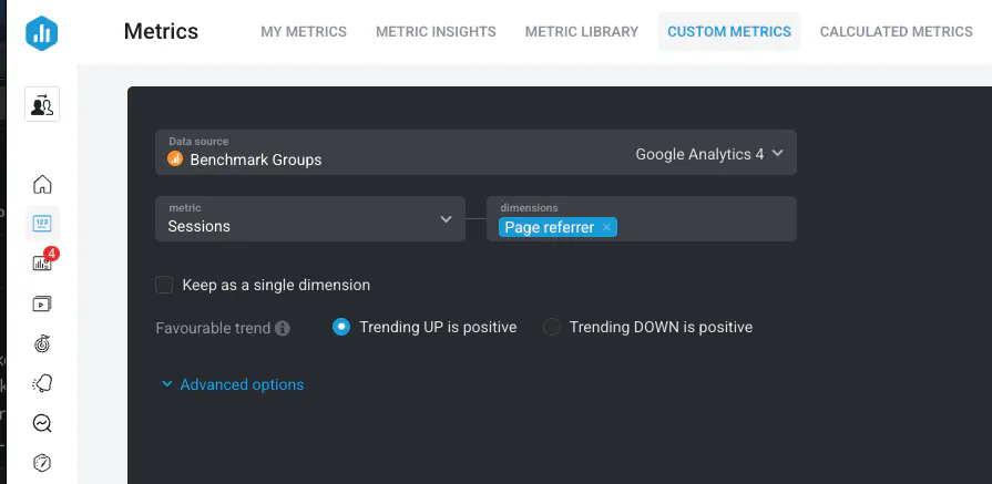 How to create a Custom Metric for Sessions by Page Referrer