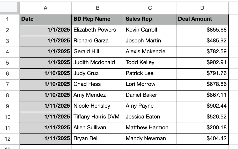 In Databox, you can visualize data from your Google Spreadsheet (or Excel). Some companies want to merge text from several columns and visualize this in one row on their Dashboards. For example:
