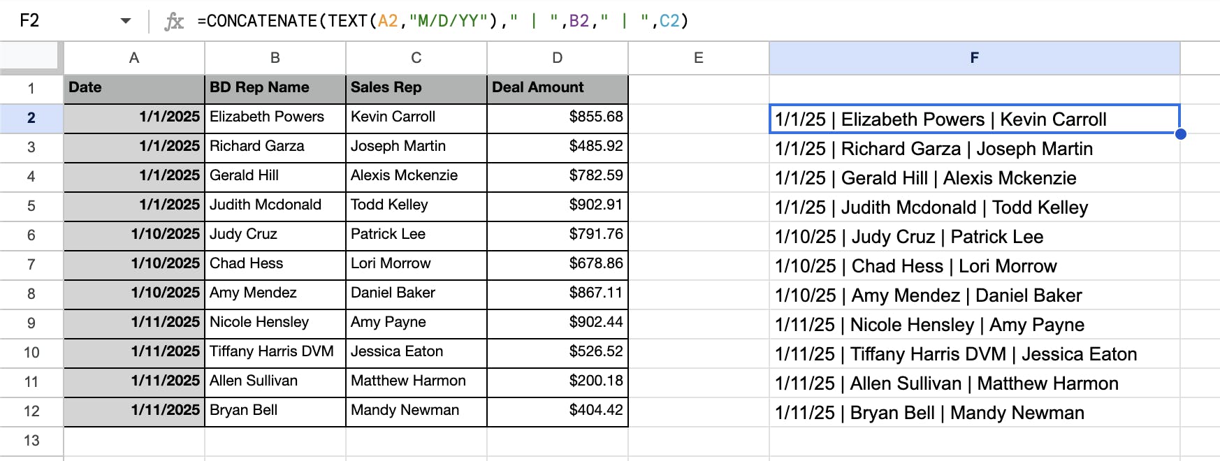 Use CONCATENATE in Google Sheets to properly format the data