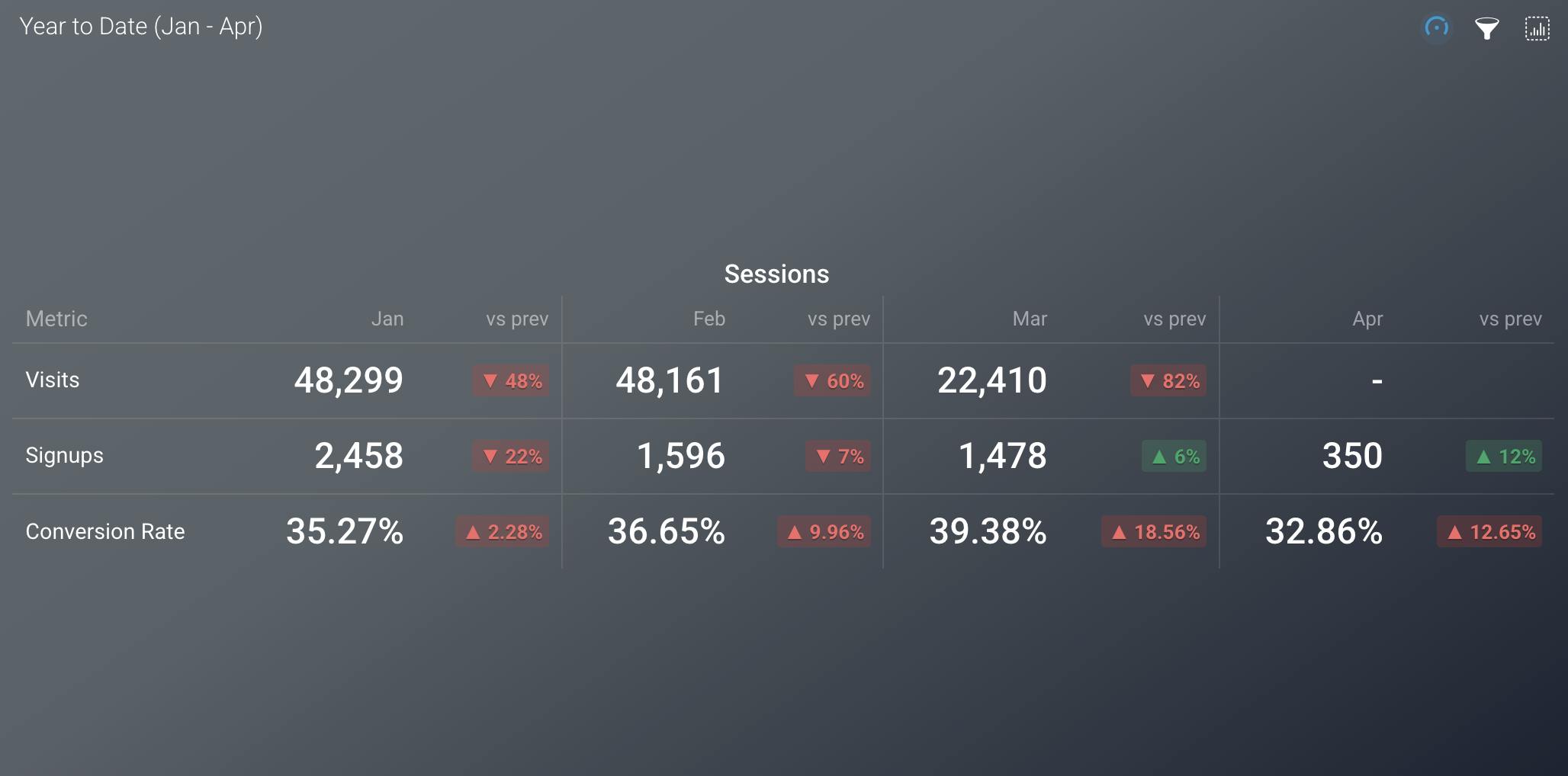 If you want to review performance trends over time, displaying metrics by month in a table is a great way to get a clear, side-by-side comparison. Whether you're tracking revenue, leads, sessions, or any other metric, organizing the data monthly gives you a straightforward view of changes and patterns.