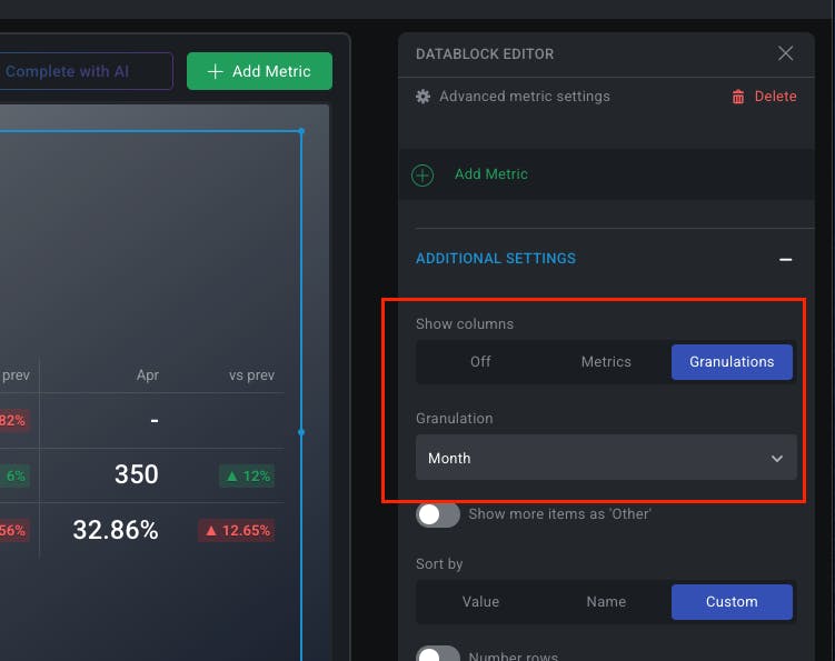 Optionally, you can add additional metrics to the table.