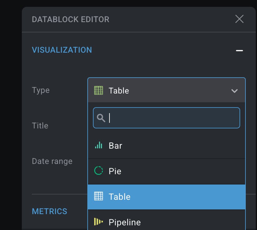 Create a new table from scratch or click on an existing Datablock and change its visualization to a Table.